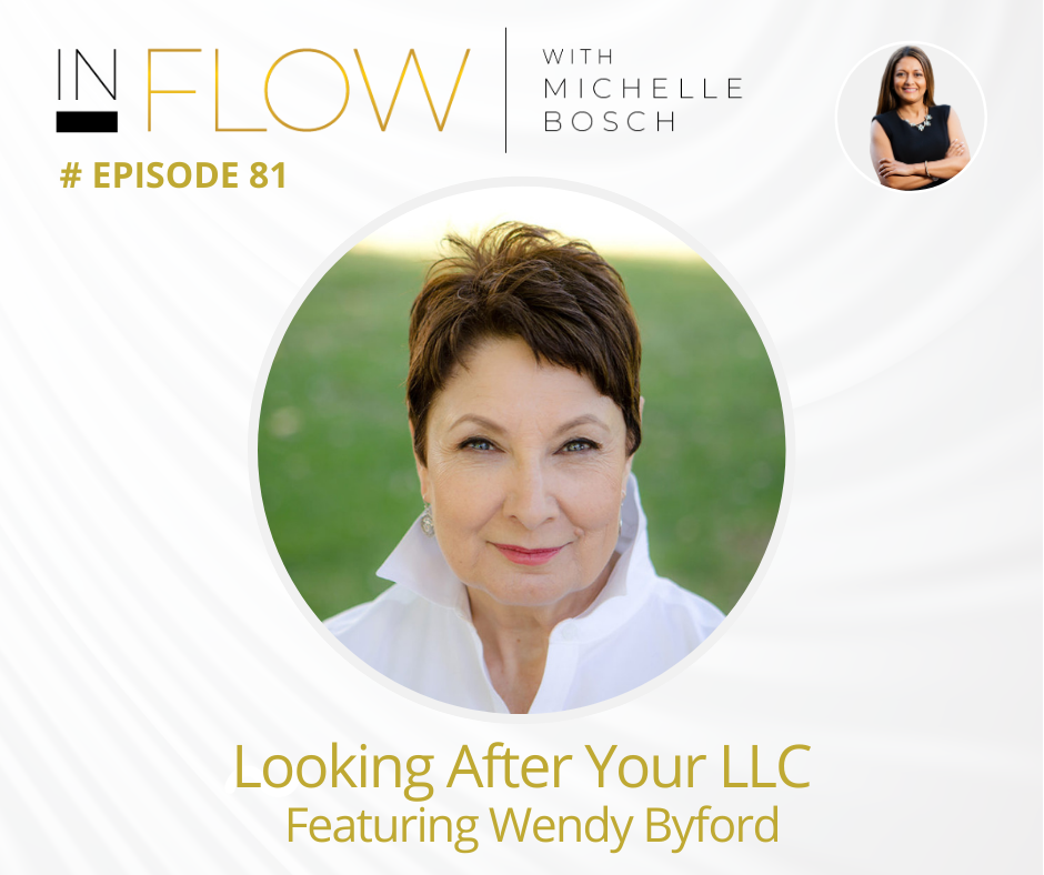 Welcome to “The InFLOW Podcast.” I’m your host, Michelle Bosch. I’m super excited to have with me today a guest. Her name is Wendy Byford. Wendy is the CEO and owner of BizEngaged, LLC. I’ve known Wendy for many, many years. And she and her husband definitely are responsible for keeping us on the right side with anything relating to LLCs and incorporation and entities. And so I wanna give you a warm welcome, Wendy, to “The InFLOW Podcast.”